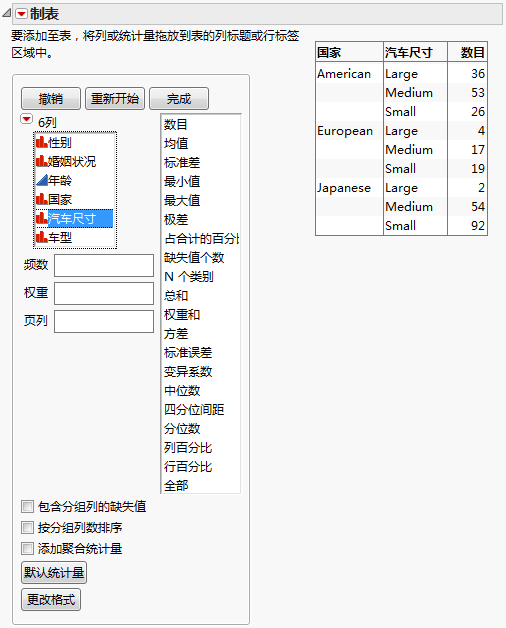 图 9.14 已添加到表的“产地”和“汽车尺寸”