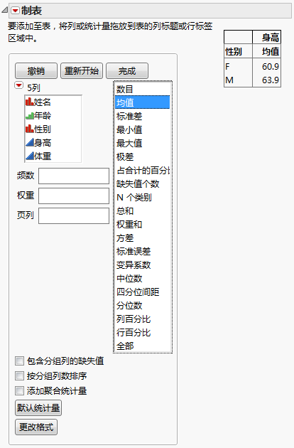 图 9.2 显示身高均值的表