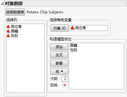 图 5.12显示使用 Potato Chip Subjects.jmp 填充的“对象数据”分级显示项。
