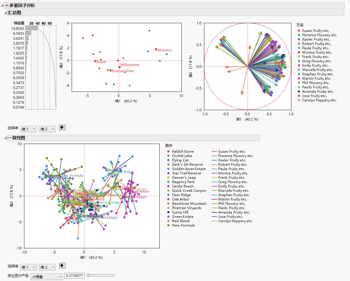 选择分析 > 消费者研究 > 多因子分析。
