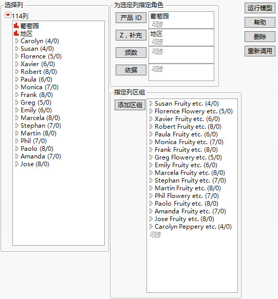 指定要用作补充变量的列。您对这些变量之间的关联感兴趣,但这些变量并不包括在计算中。