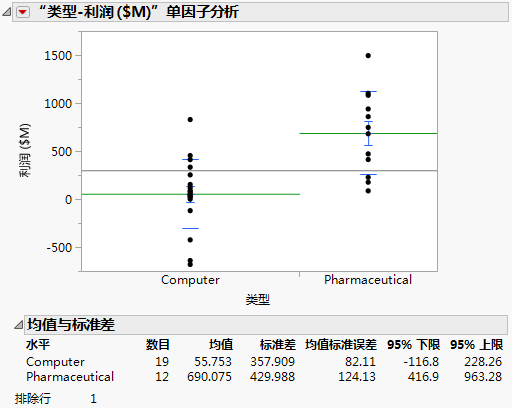 本示例使用 Companies.jmp 数据表,表中包含来自医药和计算机行业的 32 家公司的财务数据。