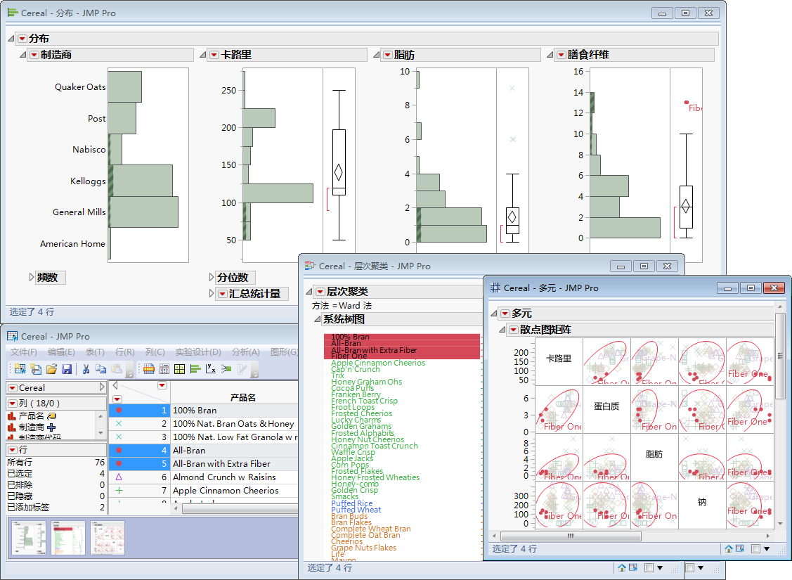 样本数据表进行了逐步分析。您将学习如何在“分布”、“多元”和“层次聚类”等平台中探索数据。