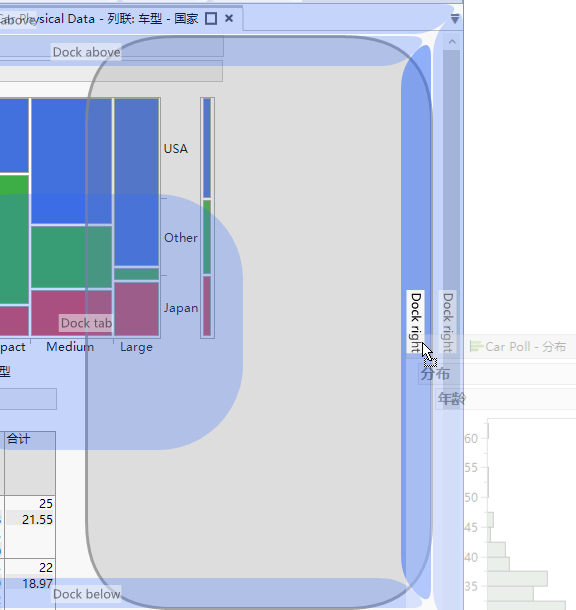 将“分布”报表选项卡拖到右侧,直到最右侧显示停放右侧区。