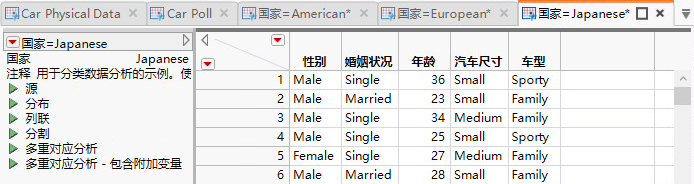 在项目中,选择 Car Poll.jmp 选项卡。
