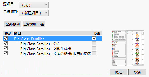 从任意窗口中,选择窗口 > 移至项目/从项目移动。