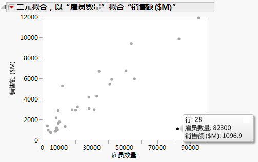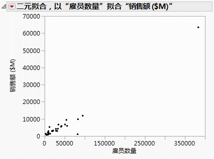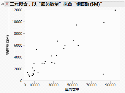 本示例使用 Companies.jmp 数据表,表中包含一组公司的销售数字和雇员数量。