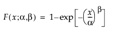 使用这些参数,Weibull 分布的 pdf 和 cdf 表示为对数变换的最小极值分布 (SEV),该分布使用位置尺度分布参数化(