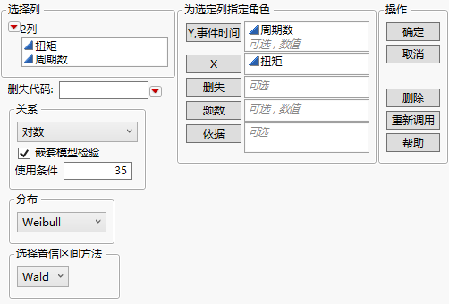 选择分析 > 可靠性和生存 > 以 X 拟合寿命。