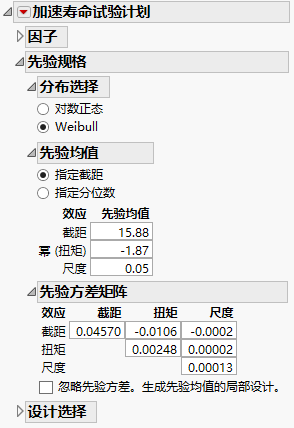 取消选择选项忽略先验方差。生成先验均值的局部设计。