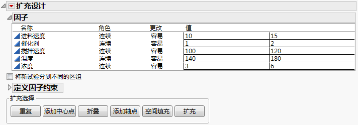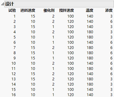 点击制表生成包含带结果的原始设计和扩充试验的设计表。