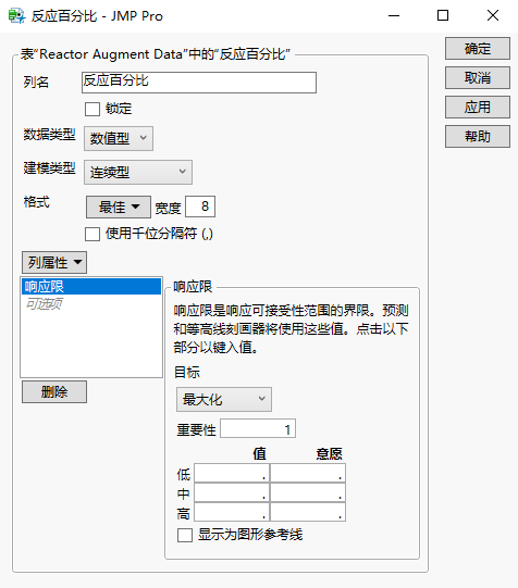 图 6.5 更改“反应百分比”列的“响应限”列属性