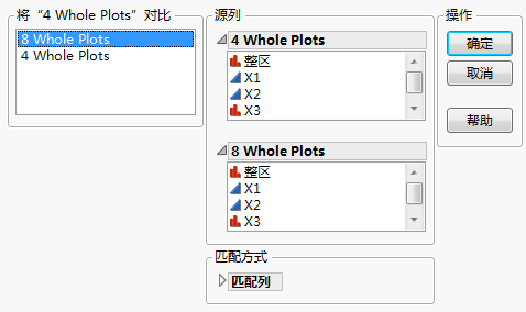 打开“参考设计”下的匹配方式分级显示项:20 次试验“4 Whole Plots”。