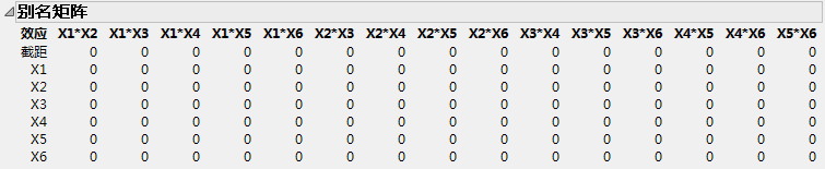 从红色小三角菜单中选择最优性准则 > 制作别名最优设计。