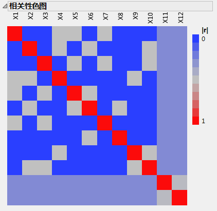 在“定制设计”窗口中,打开设计评估 > 相关性色图分级显示项。
