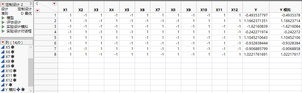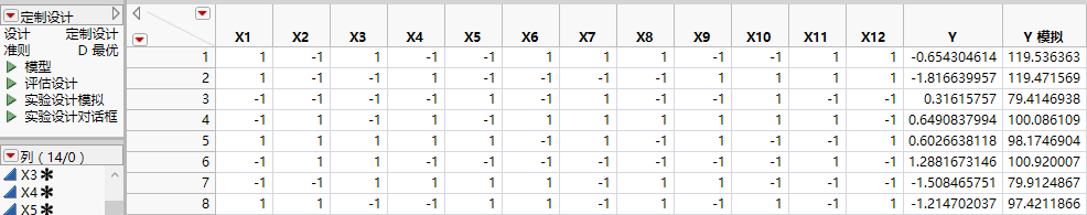 图 5.13 包含模拟响应的设计表