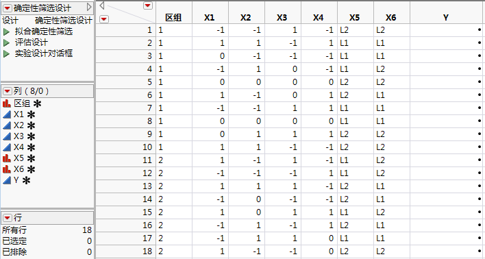 点击制表可构造“确定性筛选设计”数据表。
