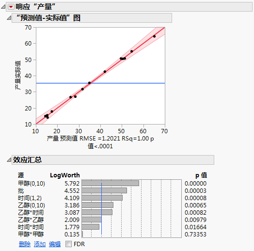 此时,执行实验并将数据记录在设计表的产量列中(图 7.8)。Extraction2 Data.jmp 样本数据表包含您的实验结果。Extraction2 Data.jmp 样本数据表中试验的顺序不同于图 7.8中的顺序。