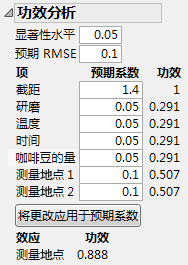 当您在“预期响应”列中设置新值时,点击将更改应用于预期响应可更新“预期系数”和“功效”列。