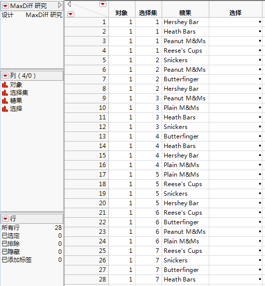 当您需要构造一个包含某个因子的选择集的设计(该因子可以作为 MaxDiff 研究的一部分向响应者提供)时,使用 MaxDiff 平台。进行您的研究,然后使用 MaxDiff 分析平台分析数据。