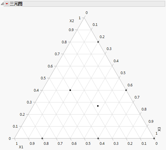 最优混料设计使用“定制设计”平台,其中已将混料变量输入响应和因子面板。