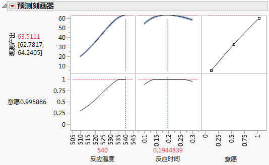 要最大化产量,请点击“预测刻画器”红色小三角菜单并选择最优化和意愿 > 最大化意愿。