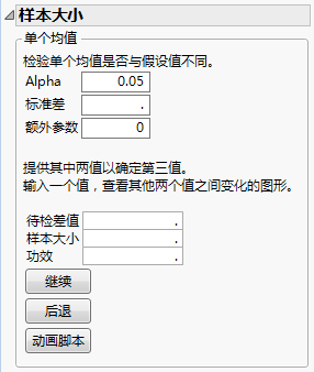 使用“单样本均值”计算器计算有关一个均值的假设检验的样本大小。研究如何权衡样本大小、功效、显著性和假设的待检差值。样本大小与功效与以下假设检验相关联: