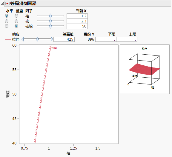 图 11.10 显示硅石和硅烷的最优设置的等高线刻画器