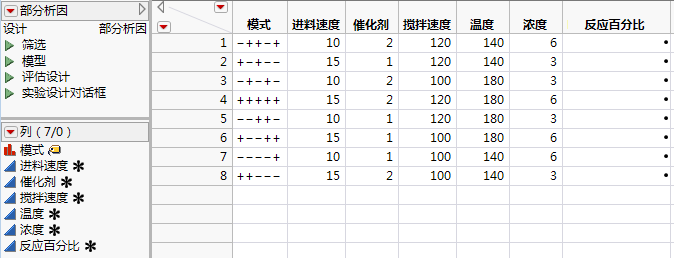 重新创建您用于生成设计表的“筛选设计”窗口。该脚本还包含用于生成设计的随机种子。