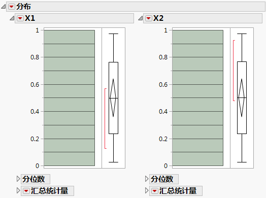 图 21.15 当试验次数增加到 20 时每个因子对应的直方图是平坦的