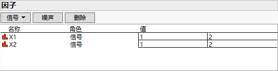 指定两个或更多 2 水平或 3 水平信号因子。信号因子是系统控制输入。这些是您可以在生产中控制的因子。