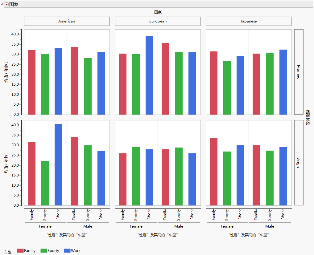 图 14.9 包含两个分组变量和两个类别变量的图表的示例