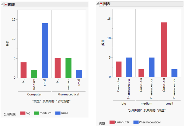 图 14.12中的条形图为公司规模变量的每个水平显示一个直条。