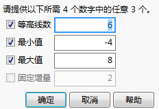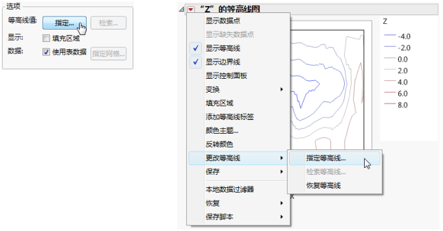 该选项在启动窗口和“等高线图”的红色小三角菜单中(指定等高线选项)提供。