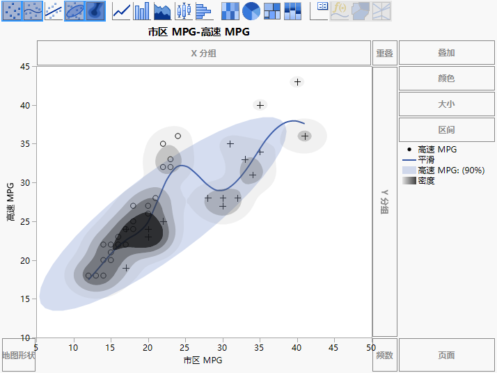 图 3.24 显示点、平滑线、椭圆和等高线元素的图形