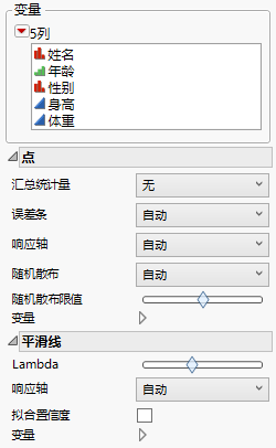 在多数显示点的图形中,将光标置于某个点上方时,会出现一个标签,显示关于相应行的信息。将光标置于该标签上方并右击可访问更多选项。您可以将该标签固定在图形中、复制内容或关闭以删除该标签。还可以通过点击该标签右上角的大头针图标来固定该标签。详细信息,请参见《使用 JMP》手册中的“将悬停标签固定在图形上”。