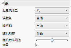 将与响应变量关联的轴改为“X”(水平)、“Y”(垂直)或“自动”(Y 轴表示点)。响应轴上的变量用于计算汇总统计量。