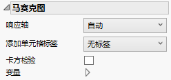 将与响应变量关联的轴改为“X”(水平)、“Y”(垂直)或“自动”(Y 轴表示马赛克图)。响应轴上的变量用于计算该变量在另一个轴上的每个水平中的观测比例。