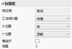 显示图中的汇总统计量值。该汇总统计量对应于您在“标题框”选项中指定为“响应轴”的轴所对应的变量。