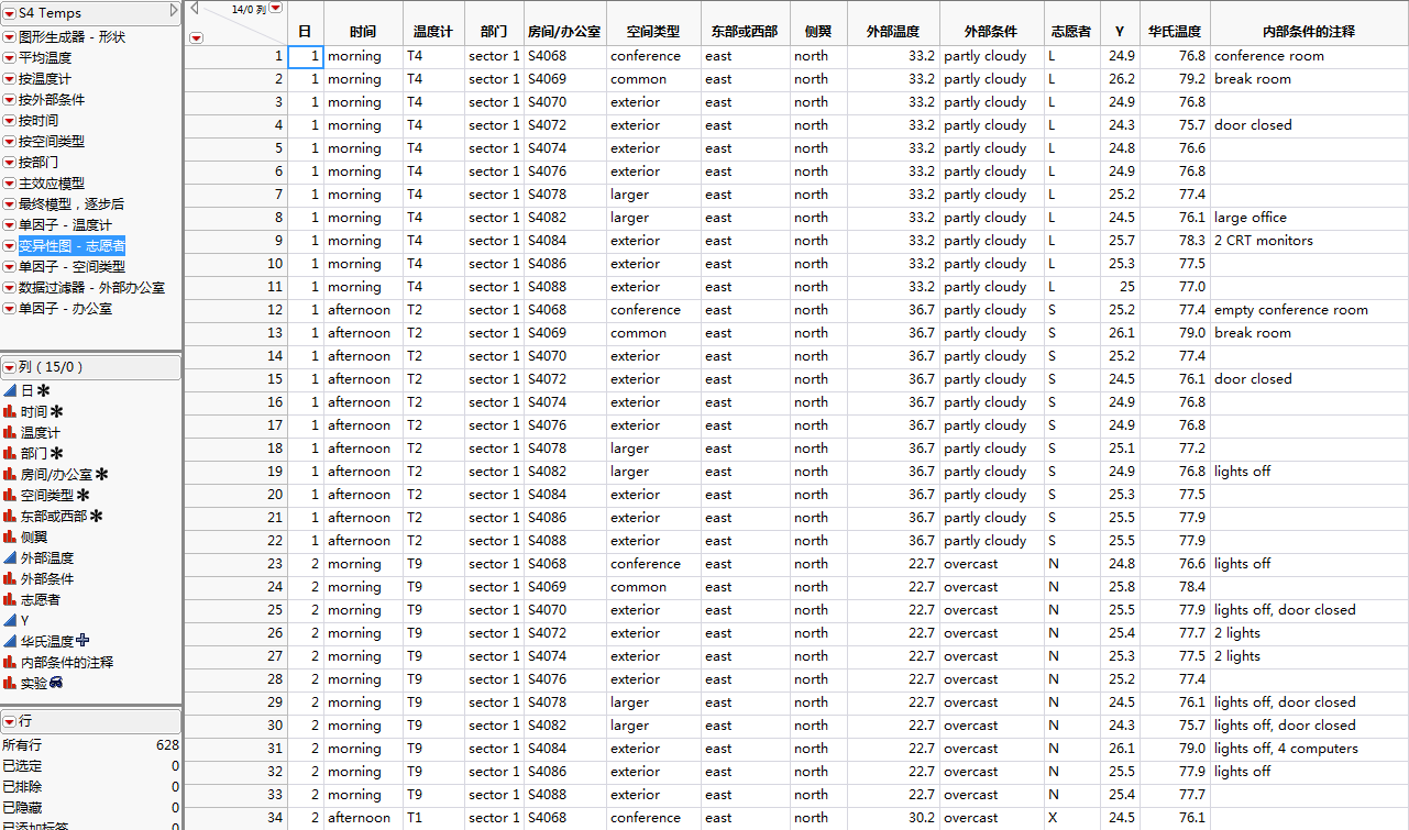 S4 Temps.jmp 数据表包含三天的办公室数据。在数据表中设置地图角色列属性,如下所示: