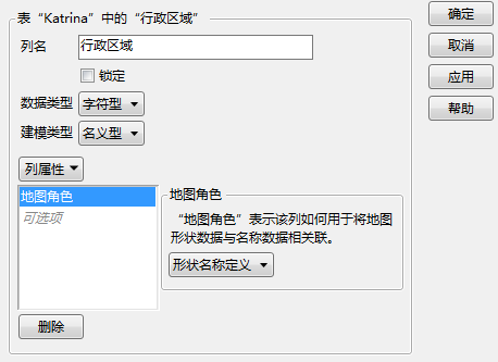 包含地图角色属性的列必须包含相同的边界名称,但列名可以不同。