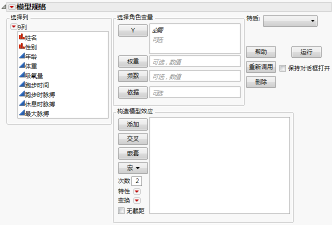 “构造模型效应”包含您在模型中输入效应所用的选项。请参见