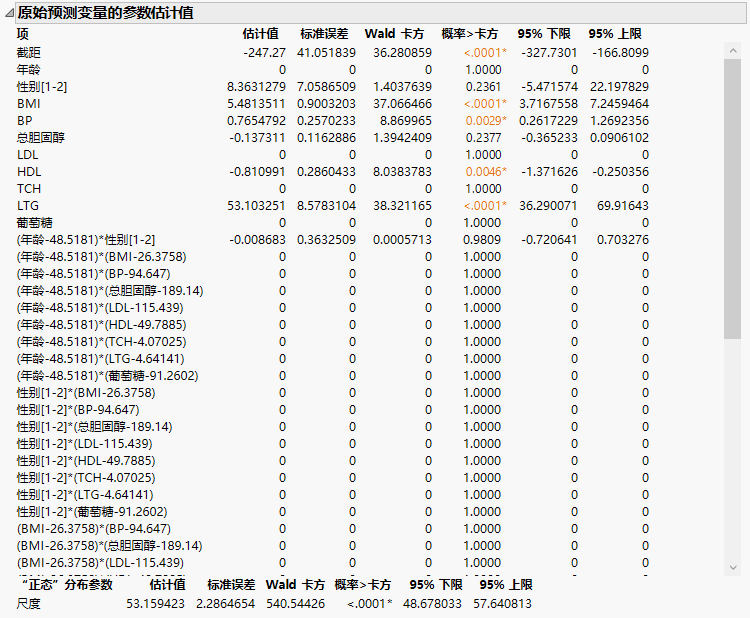图 6.3 “原始预测变量的参数估计值”报表的一部分