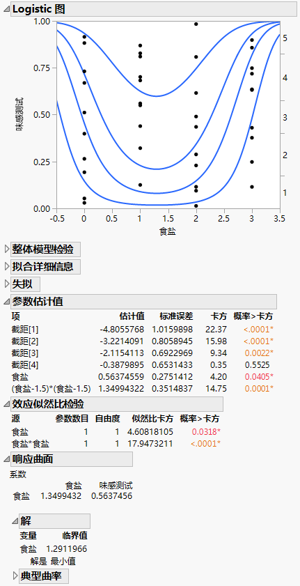 图 11.10 Salt in Popcorn.jmp 的有序型 Logistic 拟合