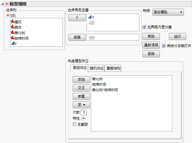 图 8.27 显示完成的“固定效应”选项卡的“拟合模型”启动窗口