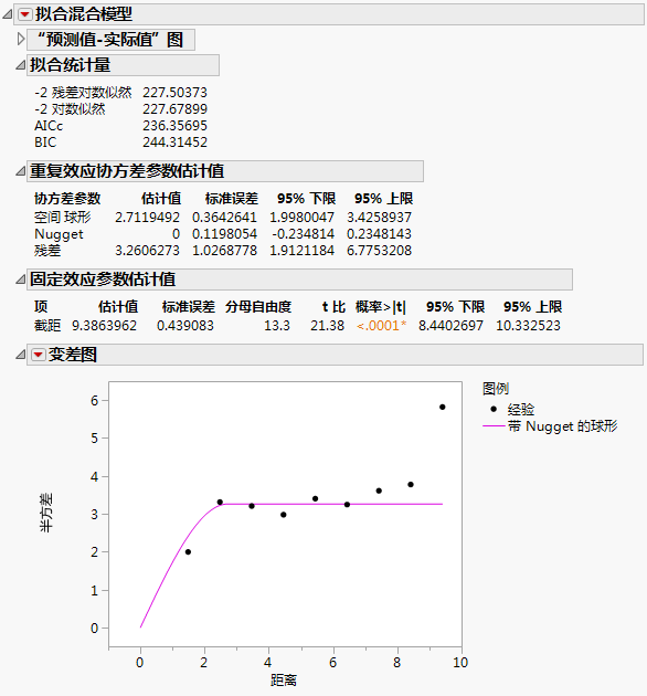 图 8.34 “拟合混合模型”报表 - 带 Nugget 的空间球体