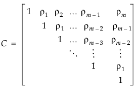 表示相隔 d 个单元的观测的相关性。相关性矩阵如下所示: