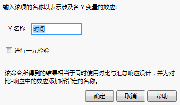 应为“Y 名称”输入“时间”。若您选中进行一元检验复选框,则报表包含一元检验,计算该检验时就仿佛将响应堆叠成了单个列。
