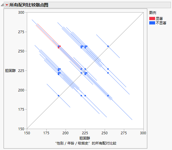图 3.32 针对用户定义的比较的“所有配对比较散点图”