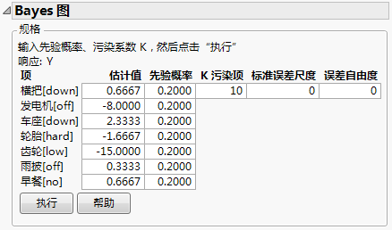 “Bayes 图”报表为确定活跃的效应提供了另一种方法。该报表帮助您使用 Bayesian 方法计算后验概率。根据 Box and Meyer (1986),该方法假定估计值是具有两种分布的混合。大部分对应于不活跃效应的估计值被认定为方差为 σ2 的纯随机正态噪声。其余估计值(即活跃效应)被认定来自污染分布,其方差是 σ2 的 k 倍。